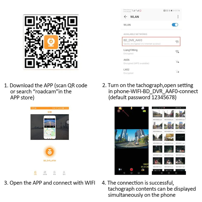 🚗 Built-in 2.4G WiFi & APP Control: Easy connectivity with the App for both Android and iOS allows for video downloads, settings adjustments, and editing directly via your smartphone. Share your journeys effortlessly on social media platforms.