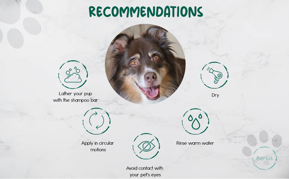 To use, lather the soap under water, massage into your pet’s fur, and rinse. Keep the bar dry between uses.