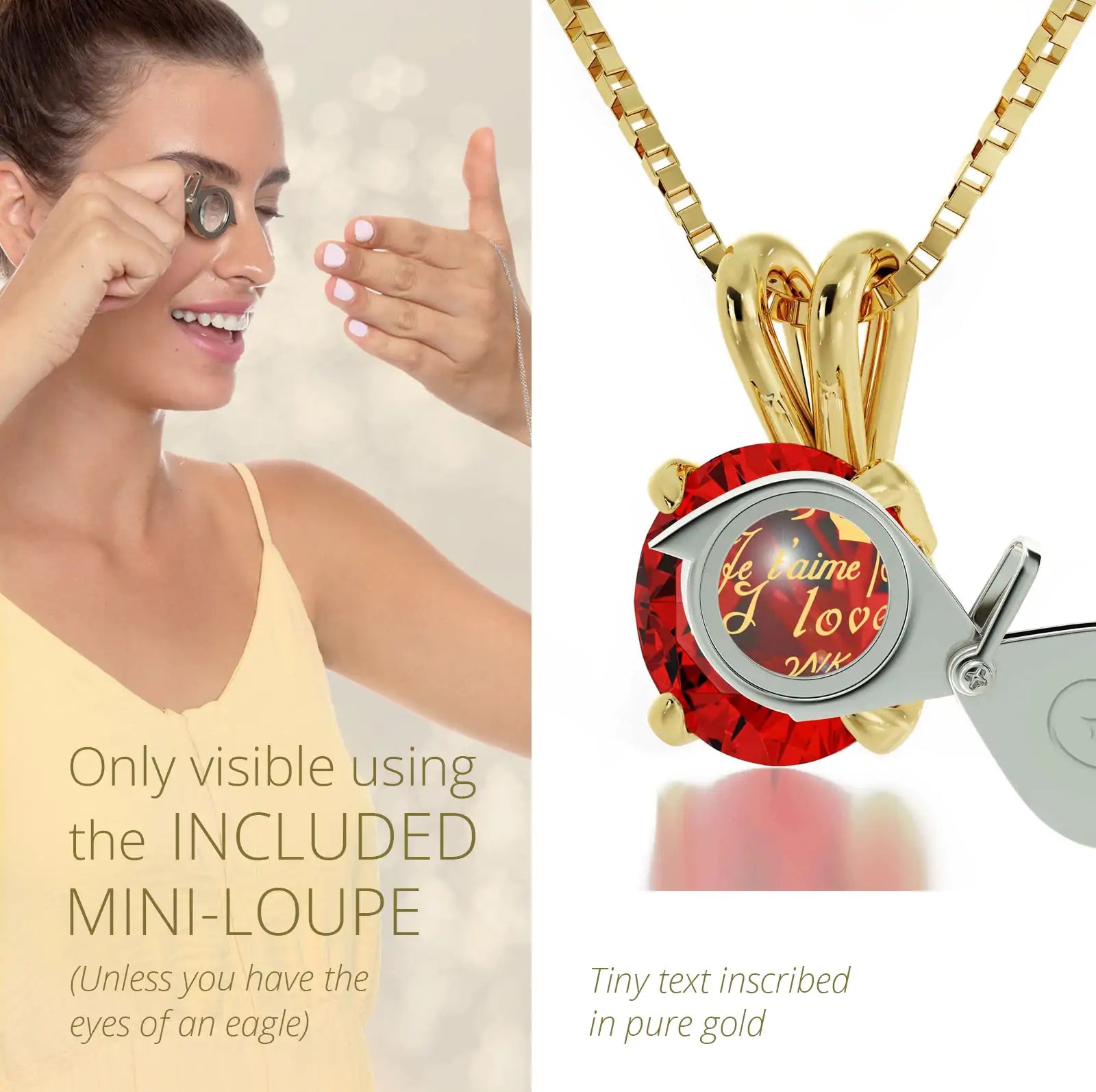 Discover the essence of multilingual romance with the Golden Embrace Multilingual Love Pendant, featuring a Swarovski crystal that brilliantly captures the sentiment 'I love you' in 12 different languages, all inscribed in exquisite 24k gold.