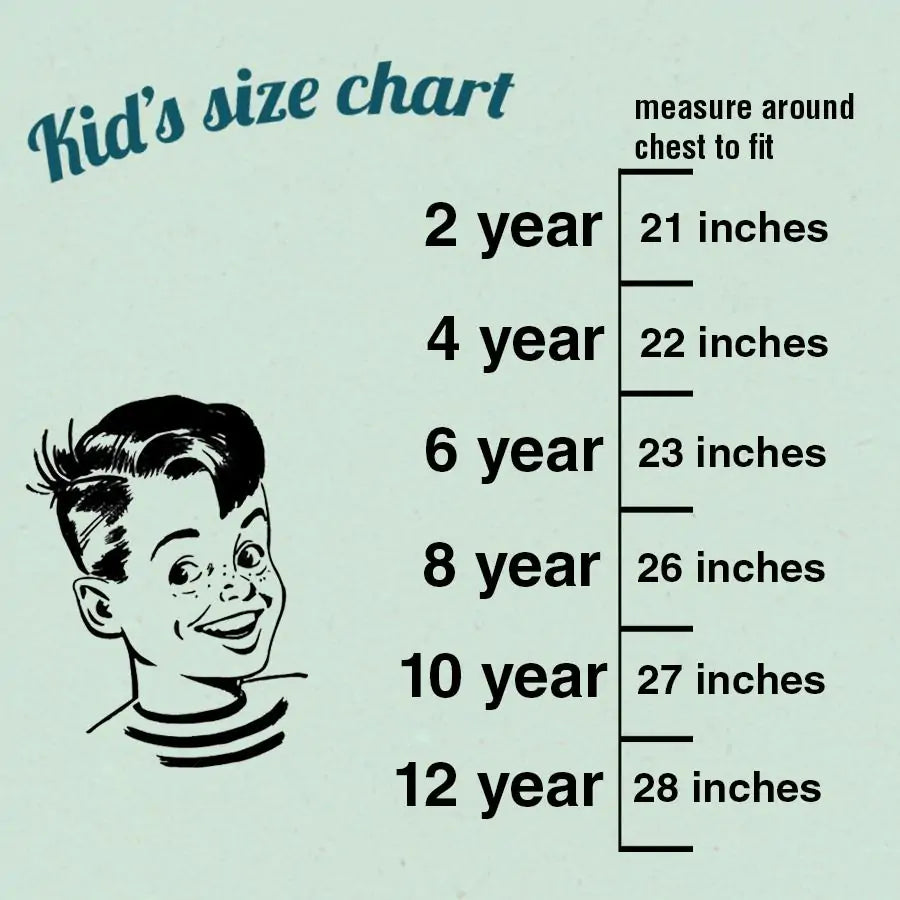 Our shirts are specially tailored for children and might run slightly small. Here’s our quick guide: