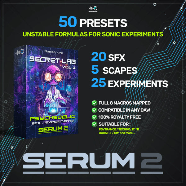 Unlock a world of psychedelic soundscapes with our Serum Pack, designed to transform your compositions. Dive into new realms of creativity and let your music speak with unique effects and sound design elements.