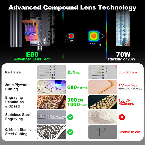 The machine operates at high speeds up to 1000mm/s, enabling you to complete projects efficiently without sacrificing accuracy.